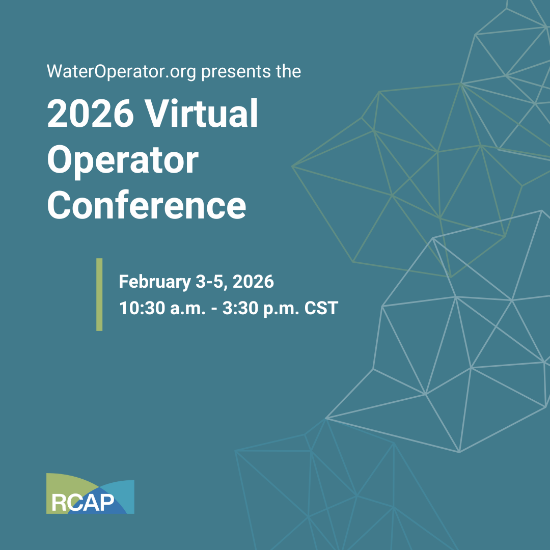 Registration is still open for the 2026 Virtual Operator Conference. Next week (Feb. 3-5 2026) participants can earn up to 12 drinking water continuing education hours at this training event, hosted by WaterOperator.org and RCAP.