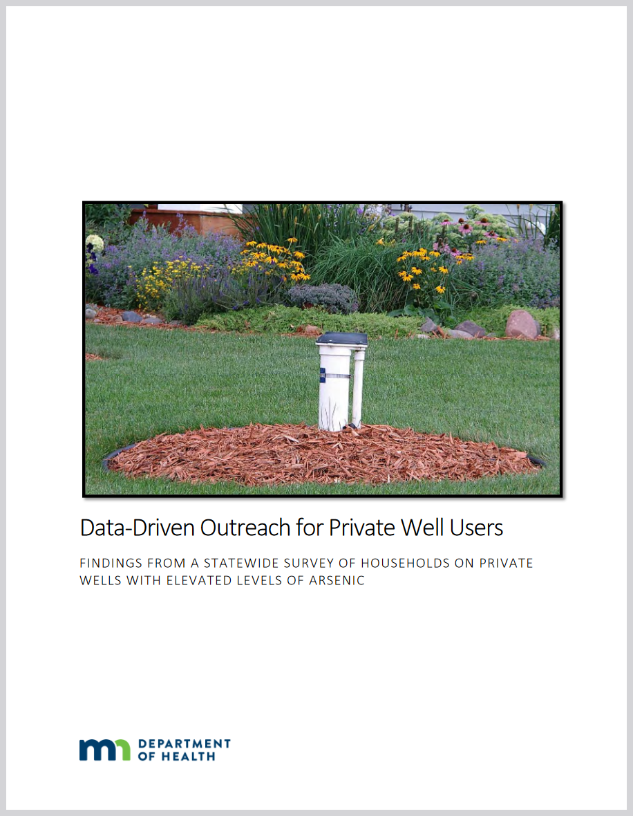 This document, from the Minnesota Department of Health, explores a survey sent by the department to Minnesota private well owners with high levels of arsenic in their water. The report summarizes MDH's analysis of the nearly 800 survey responses, which aimed to determine if and how certain variables influenced testing and treatment behaviors.
